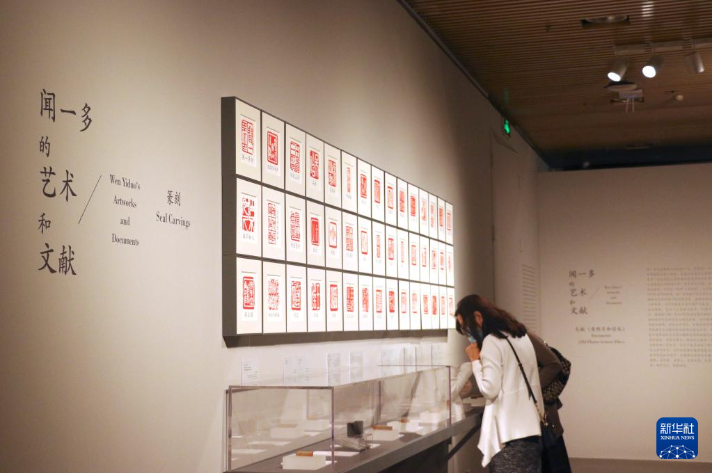 “红烛颂:闻一多、闻立鹏艺术作品展”近期在北京清华大学艺术博物馆展出。本次展览共展出闻一多的速写水彩、装帧设计、书法篆刻、照片信札,以及闻立鹏的绘画作品共计260余组件。