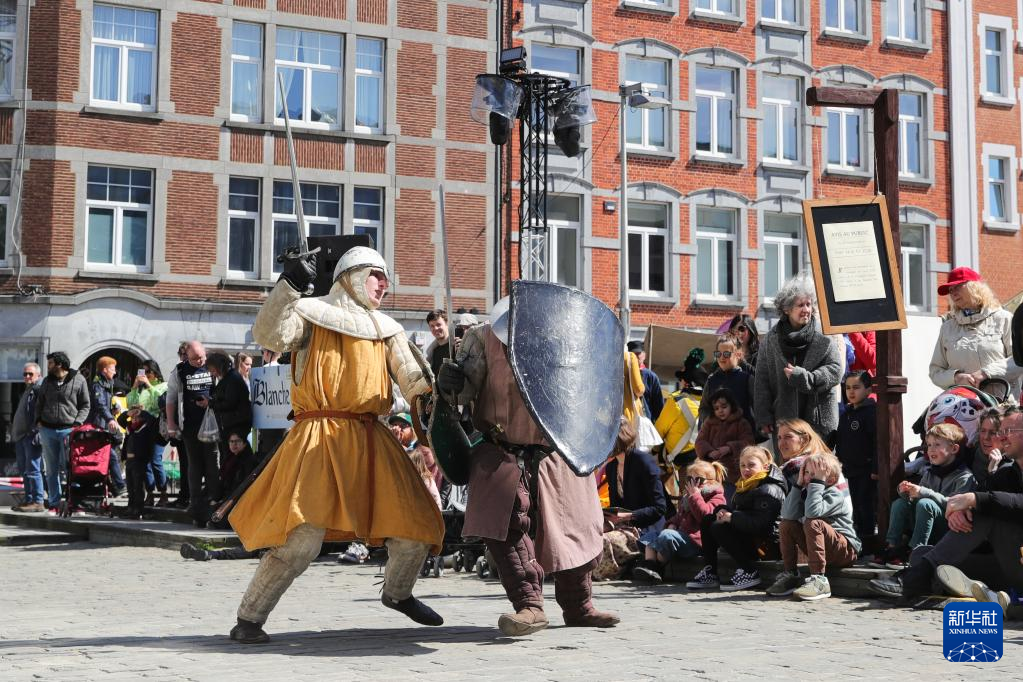 4月15日,演员在比利时那慕尔市传统民俗日活动上表演。