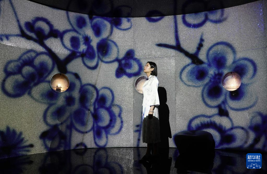 4月19日,在江西景德镇御窑博物馆,蔡文娟观看青花相关的展览。