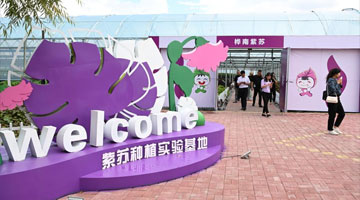 9月5日,在服贸会首钢园区文旅服务专题展区,观众在全景式动画场景中拍照留念。