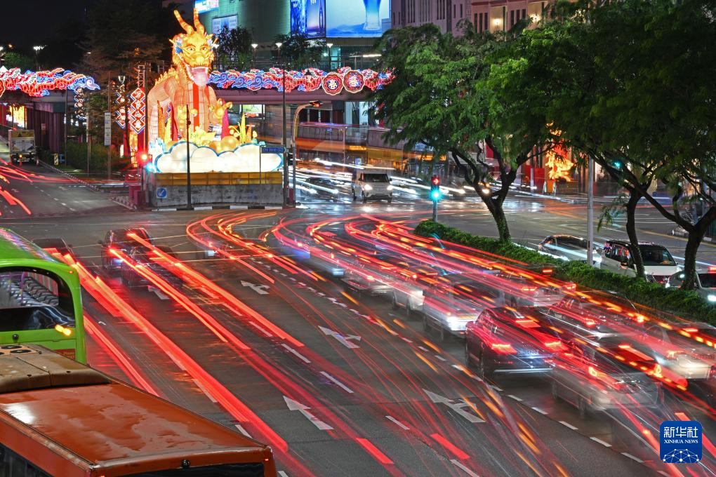 这是1月19日在新加坡牛车水拍摄的农历新年灯饰。新华社发(邓智炜 摄)
