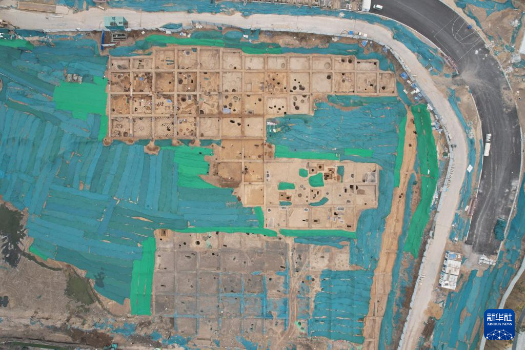 这是2022年3月3日拍摄的郑州商都书院街墓地发掘现场(无人机照片)。