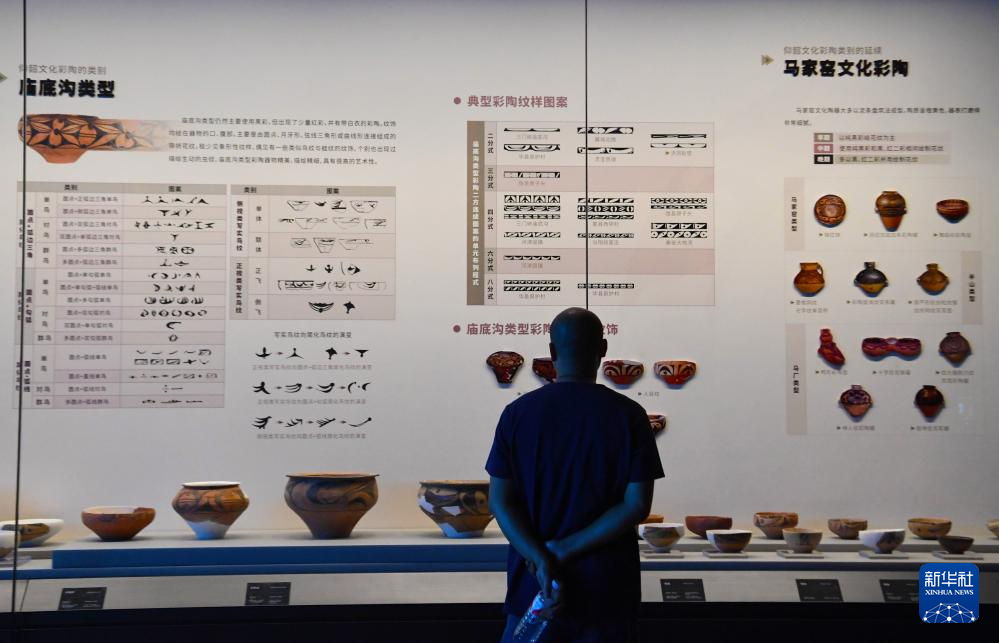 9月24日,参观者在仰韶文化博物馆观看展品。