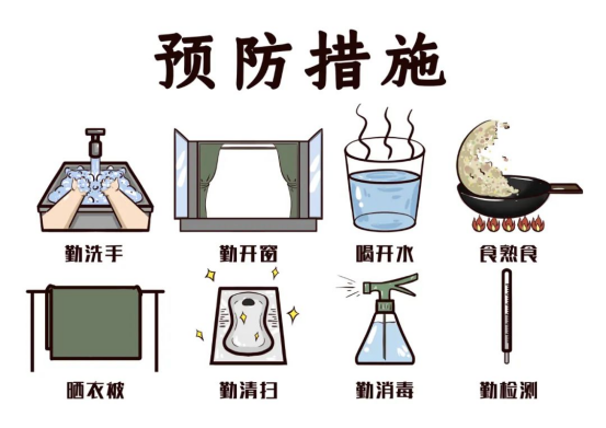 1. 本病流行季节,教室和宿舍等场所要保持良好通风;