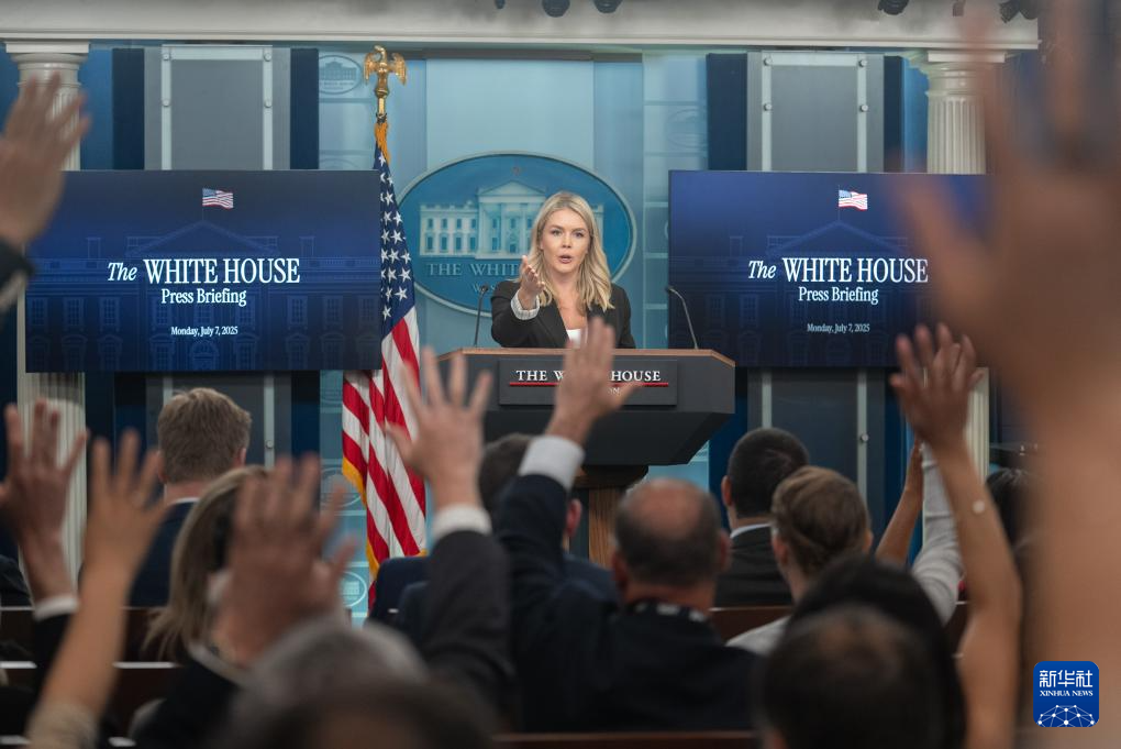 7月7日,在美国首都华盛顿白宫,美国白宫新闻发言人卡罗琳·莱维特出席记者会。
