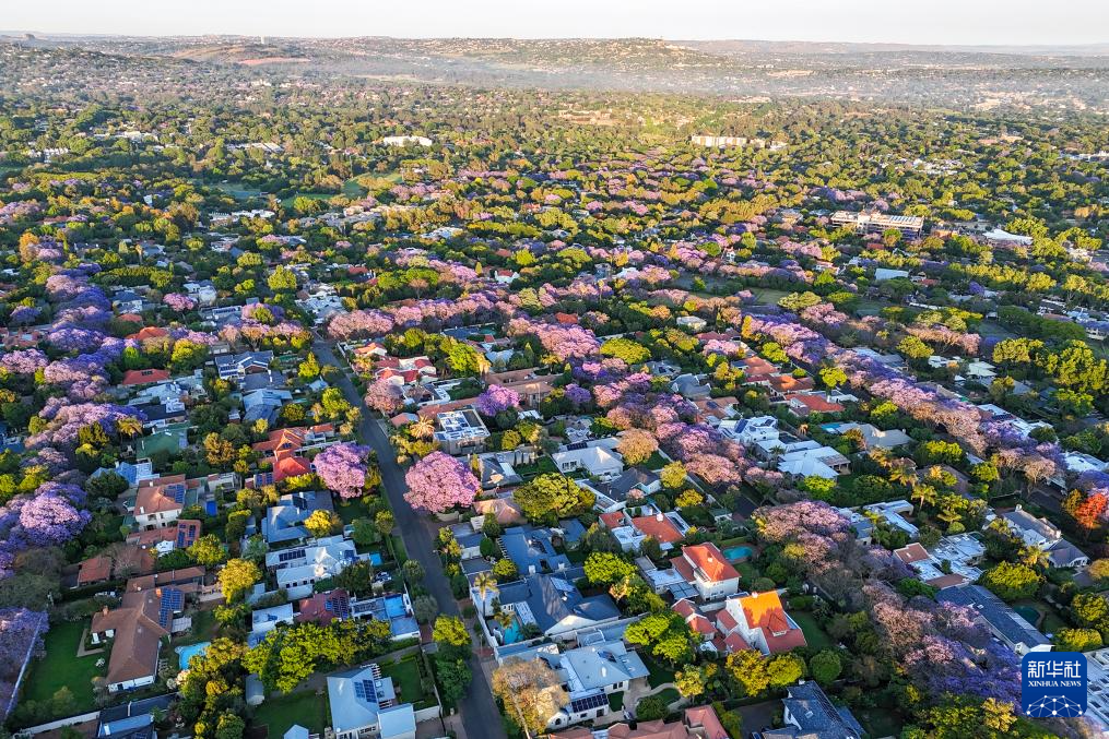 每年的10月中旬至11月上旬,南非约翰内斯堡随处可见盛开的蓝花楹。