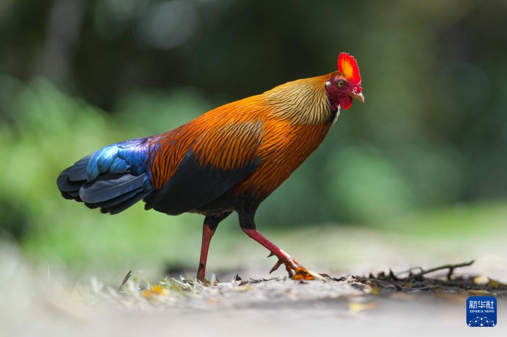 这是10月15日在斯里兰卡努沃勒埃利耶霍顿平原国家公园拍摄的斯里兰卡原鸡。
