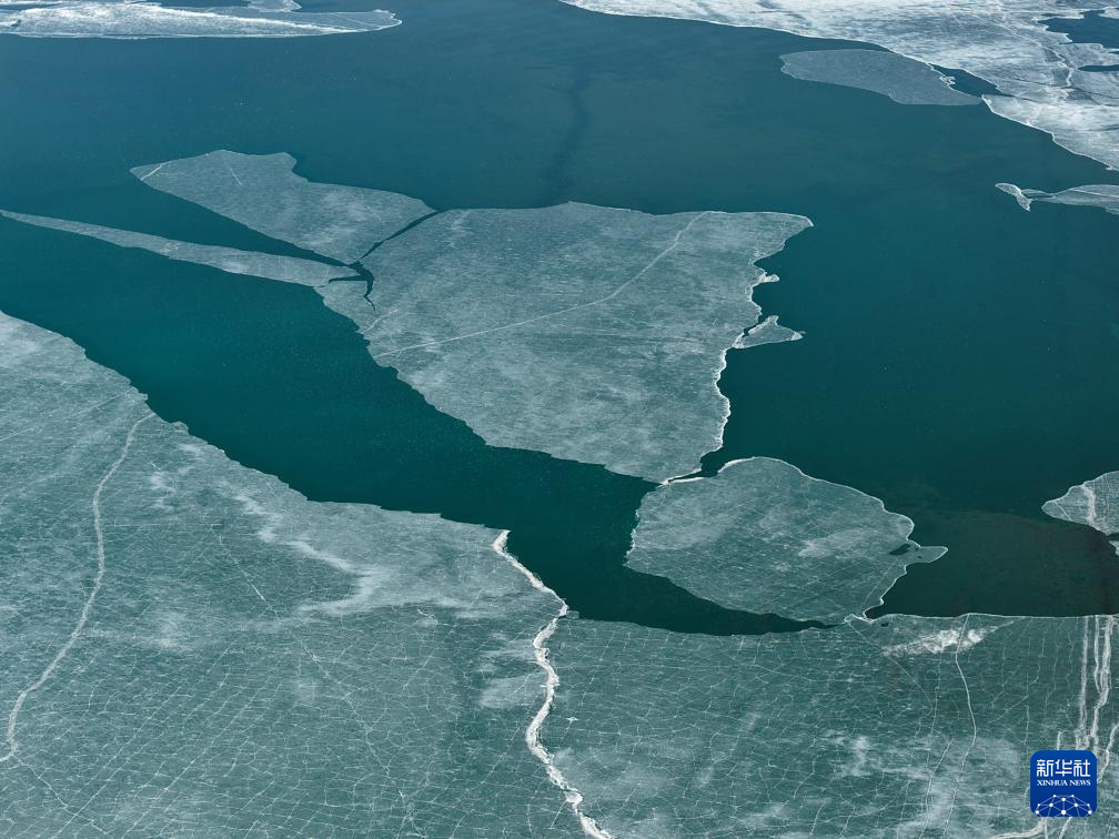 这是3月10日在青海省果洛藏族自治州玛多县境内拍摄的扎陵湖一角(无人机照片)。