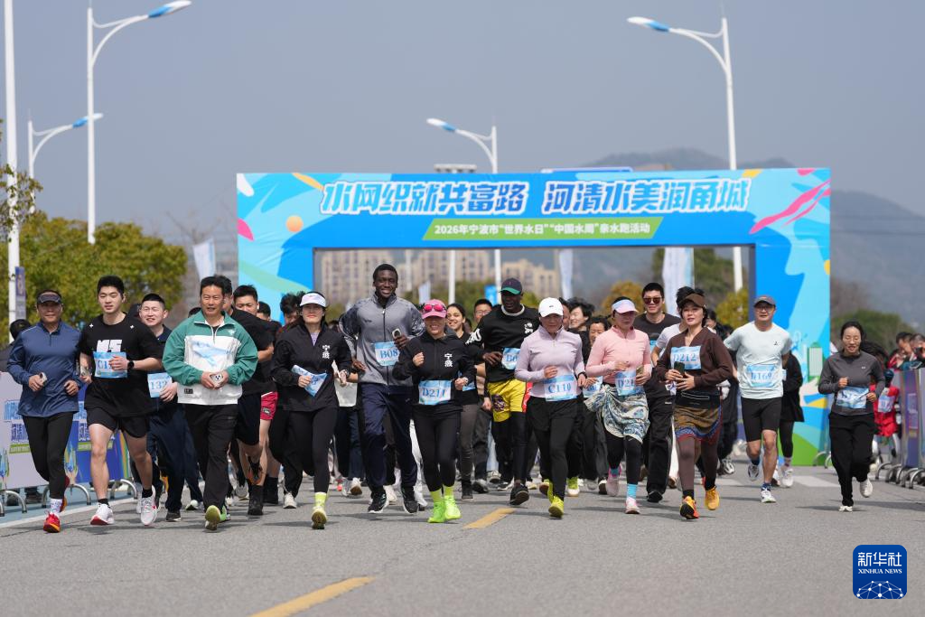 3月20日,跑步爱好者在浙江宁波市参加“世界水日”“中国水周”亲水跑活动。