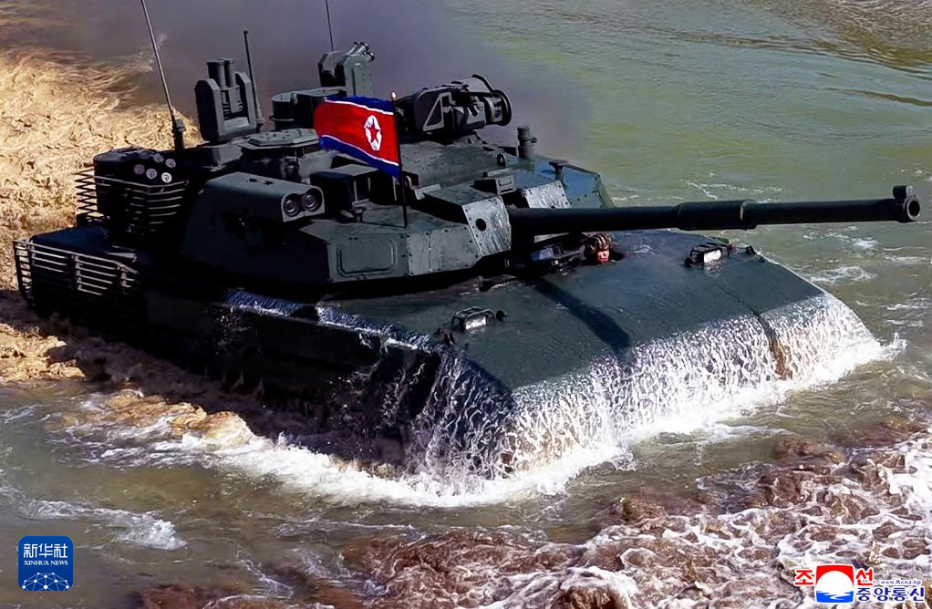 这是朝中社提供的朝鲜坦克演习的现场图片。