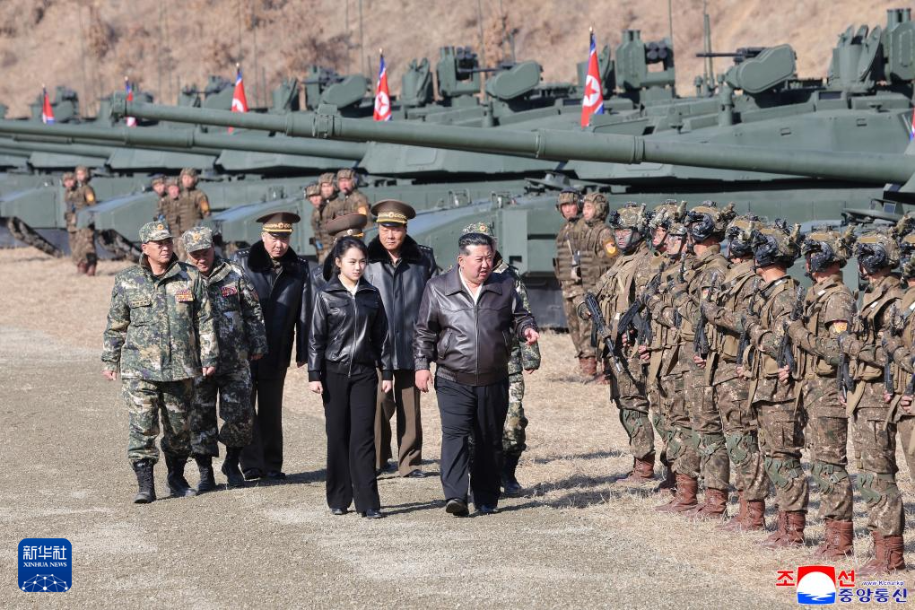 这是朝中社提供的金正恩观摩步兵和坦克兵部队协同攻击战术演习的画面。
