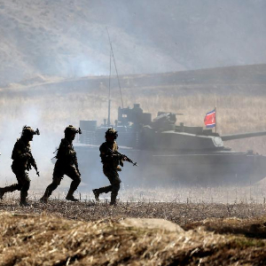 据朝中社3月20日报道,朝鲜劳动党总书记、国务委员长金正恩19日访问朝鲜人民军首都防御军直属平壤第60训练基地,观摩步兵和坦克兵部队协同攻击战术演习。