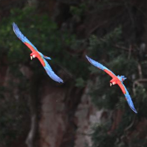 3月19日,金刚鹦鹉在巴西南部南马托格罗索州雅尔丁市的“金刚鹦鹉洞”飞翔。
