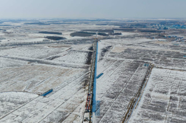 3月20日,中欧班列“东通道”佳木斯至同江铁路扩能改造工程同江特大桥正式复工架梁。