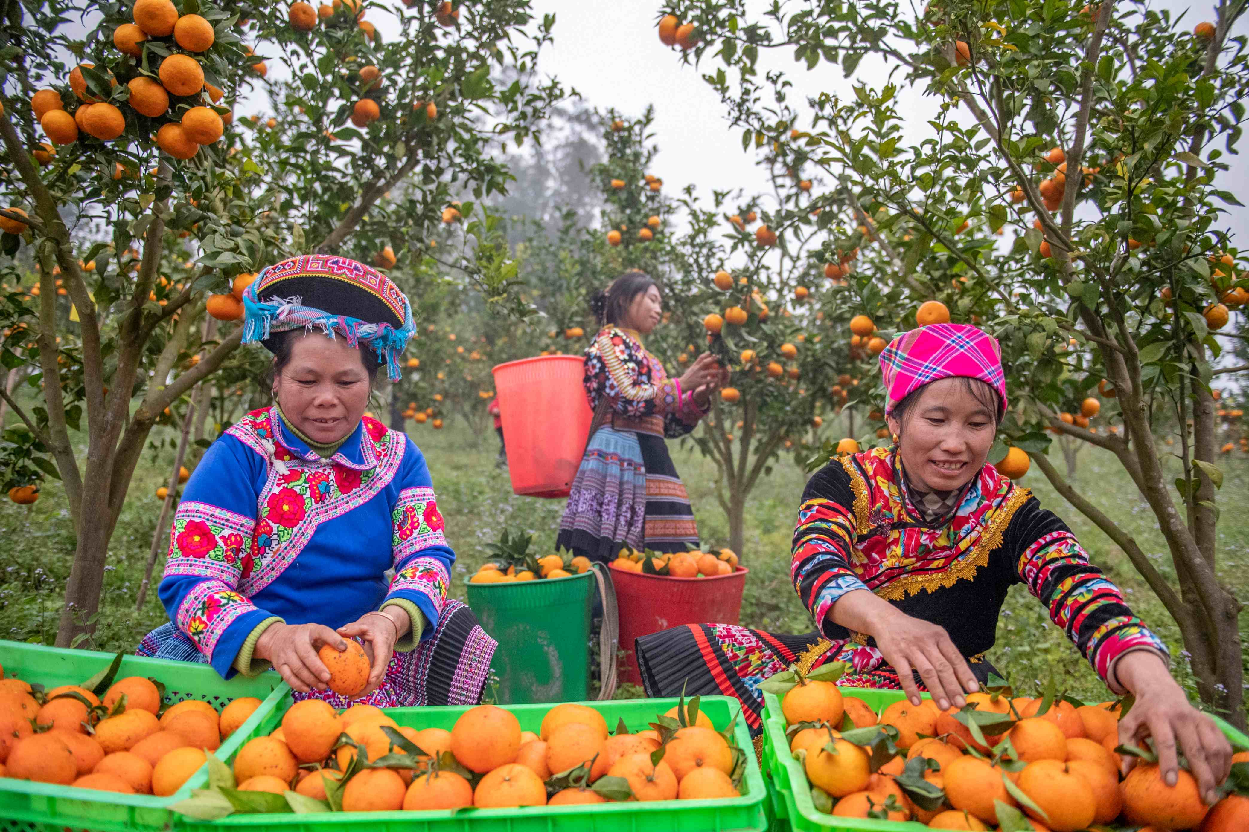 冬日里,云南省文山州马关县都龙镇的橘园基地里,饱满的橘子挂满枝头,果农们喜笑颜开,有条不紊地采摘、分拣、打包,一派丰收景象。