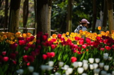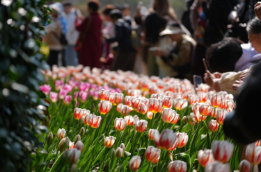 近日,贵州省黔南布依族苗族自治州龙里县龙架山国家森林公园内的数万株郁金香竞相绽放,吸引各地游客前来游玩赏景。