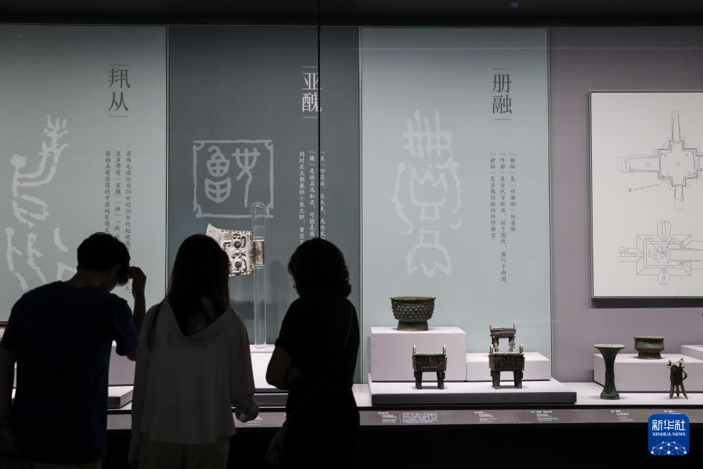 5月16日,观众在参观“海岱日新——山东历史文化展”展出的商周时期青铜器。
