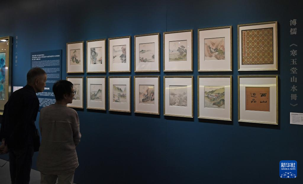 11月24日,在香港会议展览中心,观众欣赏溥儒作品《寒玉堂山水册》。