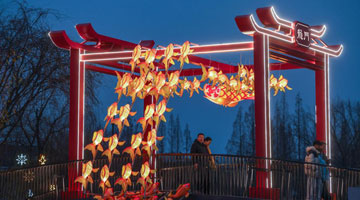 2月5日,游人在太原市晋源区太原古县城赏花灯。