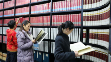 2月25日,陕西历史博物馆社教部馆员黄姣(左一)在向观众讲解。新华社记者 刘斐 摄