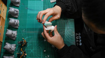 3月24日,府学胡同小学学生向来宾介绍学生创作的定格动画作品。
