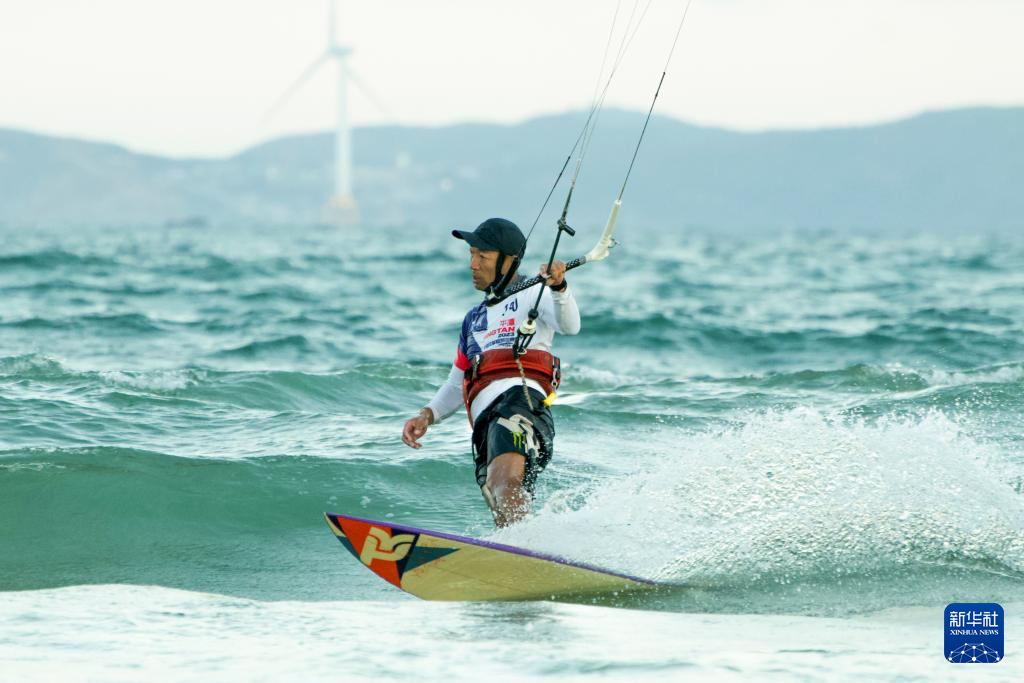 风筝冲浪中的程鹏(2025年10月15日摄)。