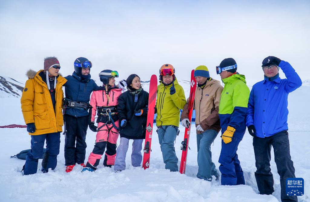 程鹏(右三)与参加新疆伊犁那拉提首届风筝滑雪公开赛的部分中外选手一起交流(2024年12月30日摄)。