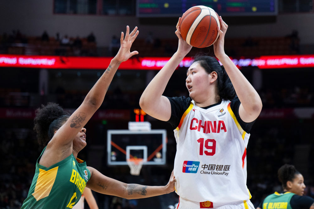 3月17日,在湖北武汉举行的2026年女篮世界杯资格赛A组比赛中,中国队83:71战胜巴西队。图为张子宇(右)在比赛中。新华社记者 伍志尊 摄