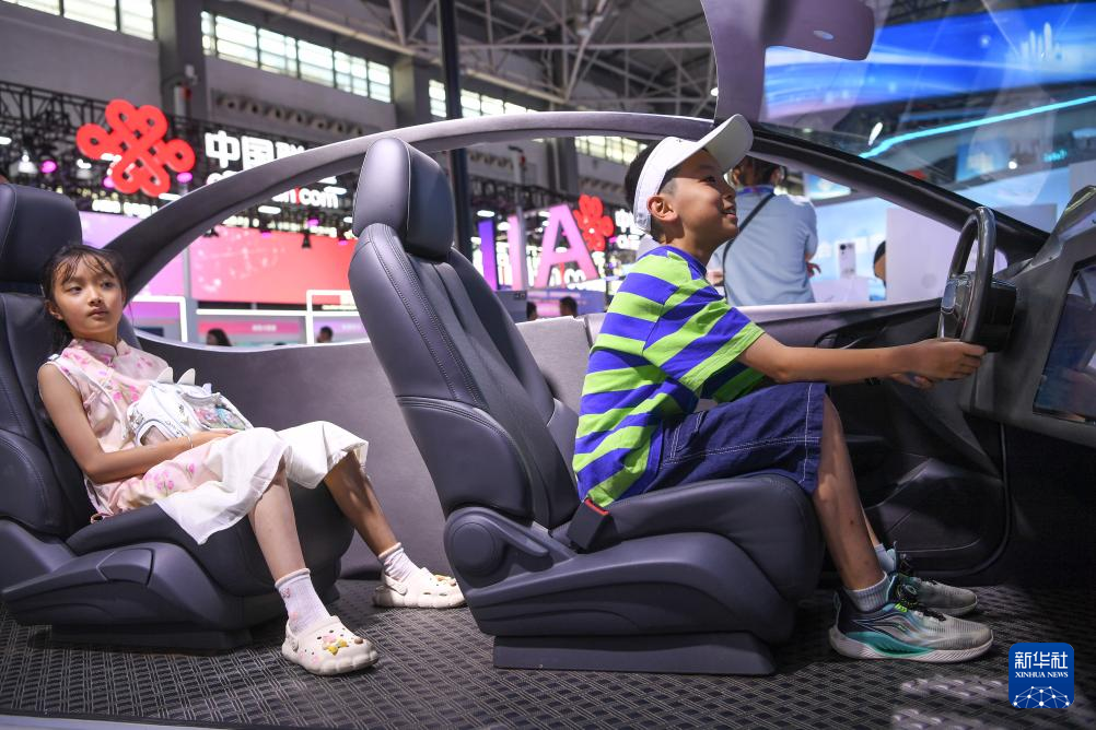 8月28日,小朋友在数博会上体验AI智能驾驶座舱。