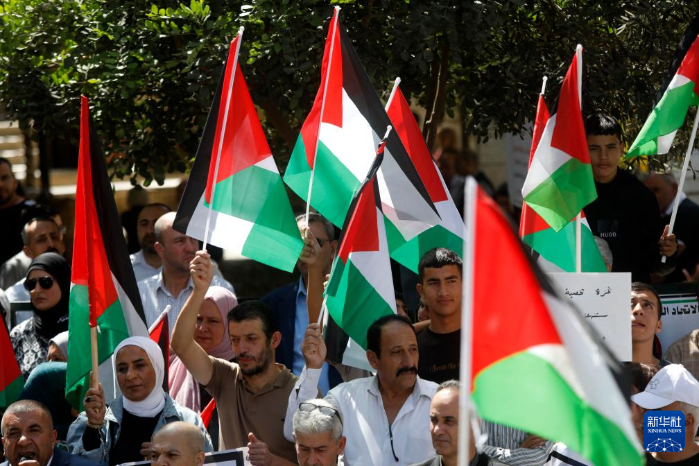 9月23日,在约旦河西岸城市希伯伦,民众挥舞巴勒斯坦旗帜参加庆祝活动。新华社发(马蒙·沃兹沃兹摄)