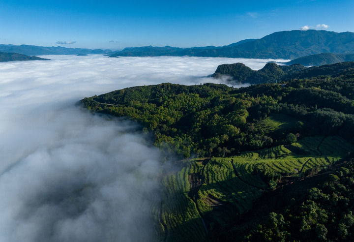 在云南省临沧市沧源佤族自治县拍摄的云海茶园。新华社记者江文耀摄