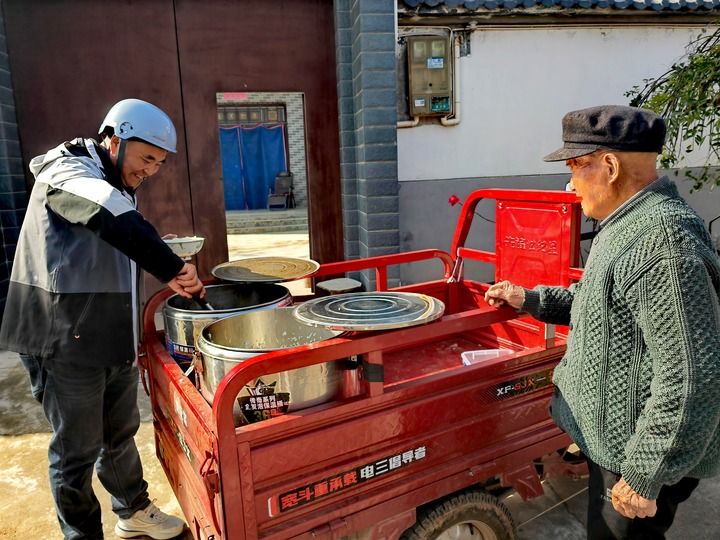 “晌午饭来咧,取碗!”下午2点19分,当庞富强把饭端到94岁的老人吴芳莲家中时,午饭全部送完。“我这走一圈,等于把每个老人都看了一眼。”庞富强说,“我们发了视频,老人的儿女们也能看到。大家背井离乡,在外打拼很不容易,看到老人吃得好,身体好,他们也常常私信感谢我。”