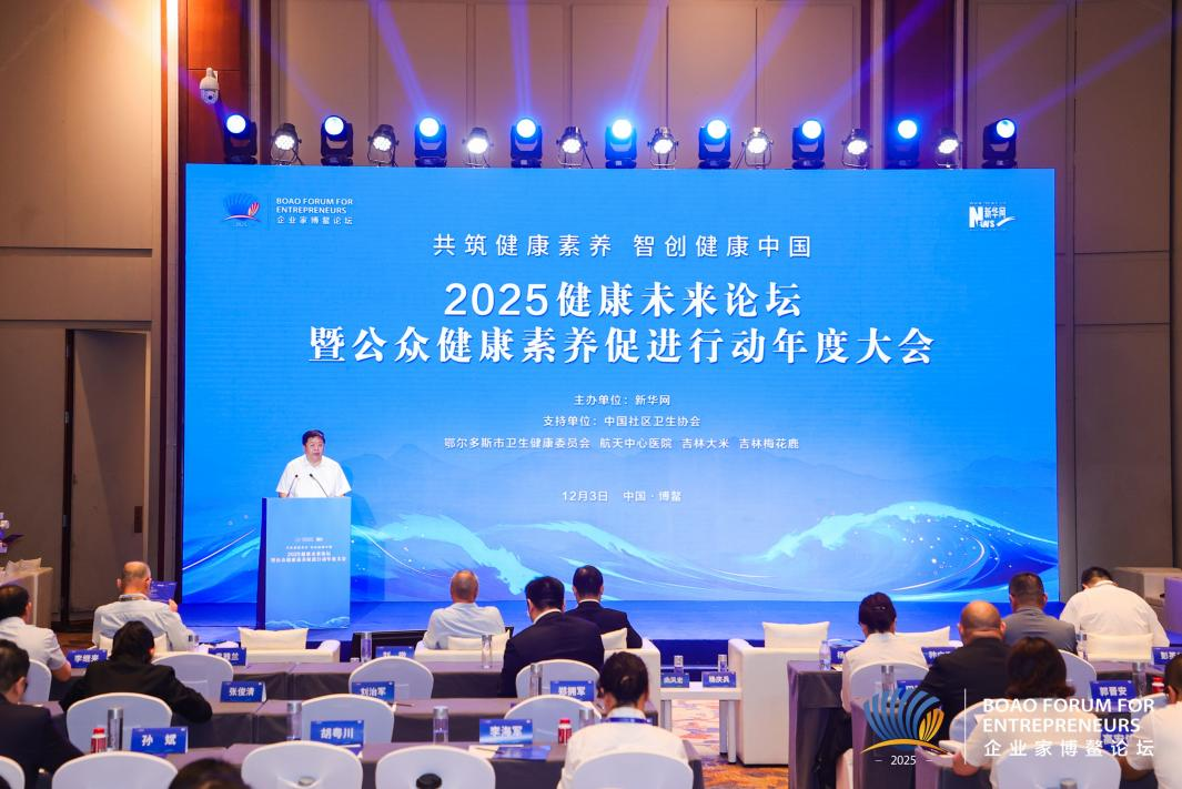 新华网博鳌12月4日电(吴起龙)12月2日至5日,2025(第十届)企业家博鳌论坛系列活动在海南博鳌举行。其间,由新华网主办,中国社区卫生协会、鄂尔多斯市卫健委、航天中心医院、吉林大米、吉林梅花鹿支持,以“共筑健康素养 智创健康中国”为主题的“2025健康未来论坛暨2025公众健康素养促进行动年度大会”于3日下午举办。