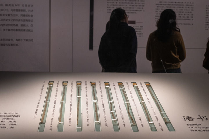 湖北省博物馆展出的睡虎地秦简。新华社记者肖艺九 摄