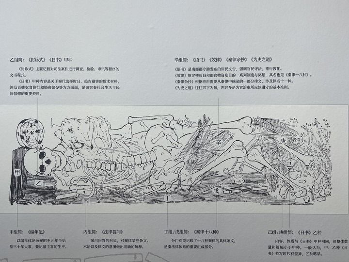 秦律是中华法系中浓墨重彩的一笔,但文献中只留下一些不成体系的片段记载。睡虎地秦简的问世,得以改善这一局面。1155枚竹简中,包括《秦律十八种》《效律》《秦律杂抄》《法律答问》《封诊式》《编年记》《语书》《为吏之道》《日书》甲、乙种等10类文献。