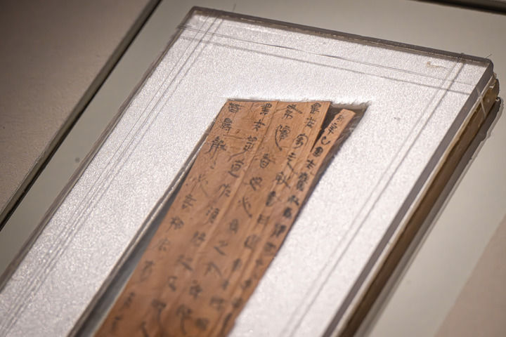 湖北省博物馆展出的家书木牍。新华社记者肖艺九 摄