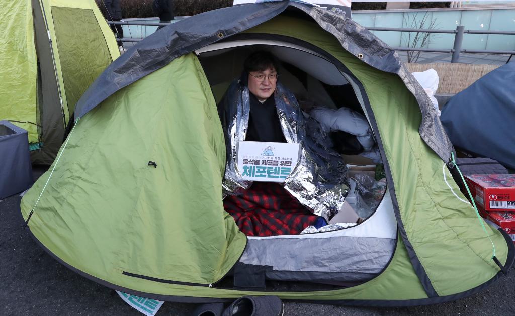 2025年1月15日,民众在位于韩国首尔的总统官邸附近示威,要求逮捕尹锡悦。