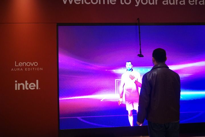 1月7日,一名男子在2026年美国拉斯维加斯消费电子展(CES)联想展台参观。