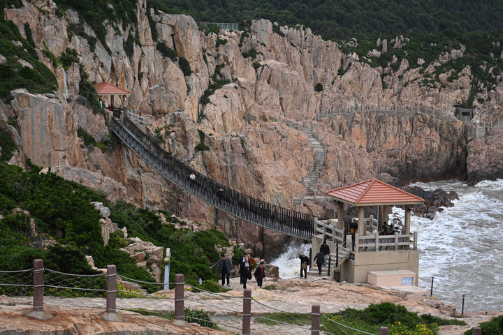游客在台州大陈岛甲午岩景区观光。 新华社记者 黄宗治 摄