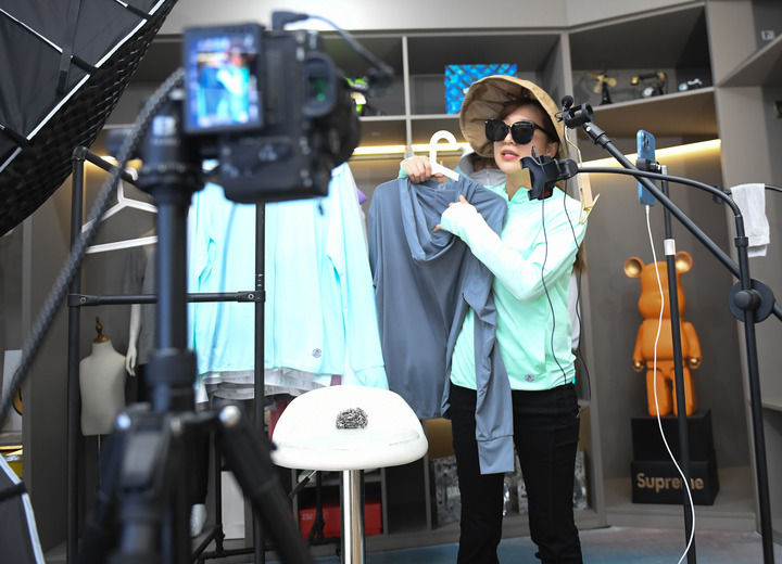 浙江台州三门县一家户外用品公司的主播在进行线上直播。新华社记者 翁忻旸 摄