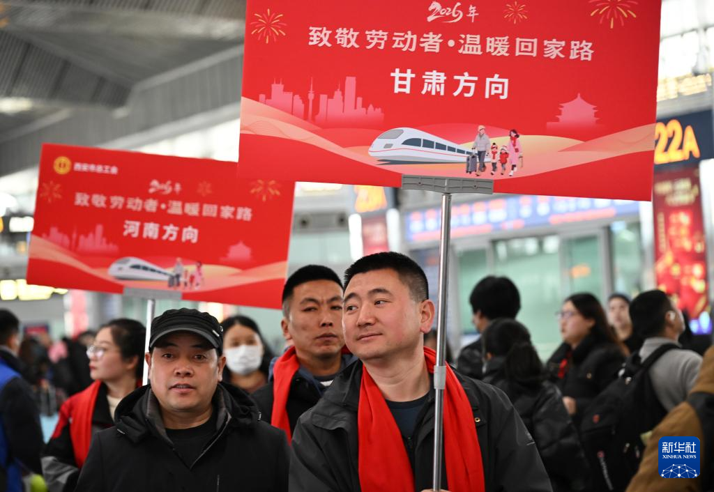 2月10日,农历腊月廿三小年,随着分别开往四川、甘肃、河南方向的“爱心专列”从西安北站准时发车,1000余名优秀产业工人、新就业形态劳动者和农民工免费乘坐高铁列车踏上归乡旅途。