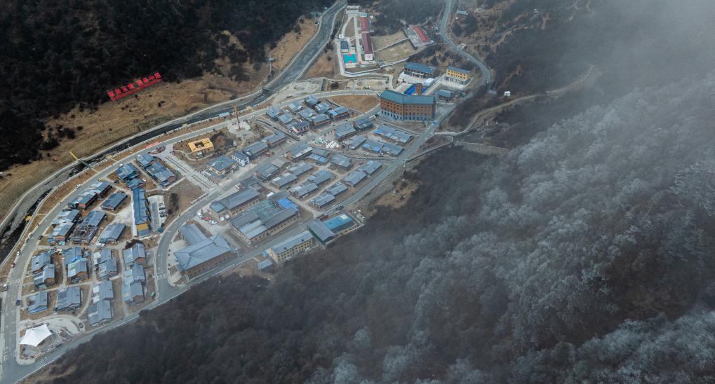 这是2月5日拍摄的云雾中的玉麦乡玉麦村全景(无人机照片)。新华社记者 丁增尼达 摄