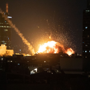 2月28日晚,以色列特拉维夫市区传出巨大爆炸声,有建筑物冒出火光。