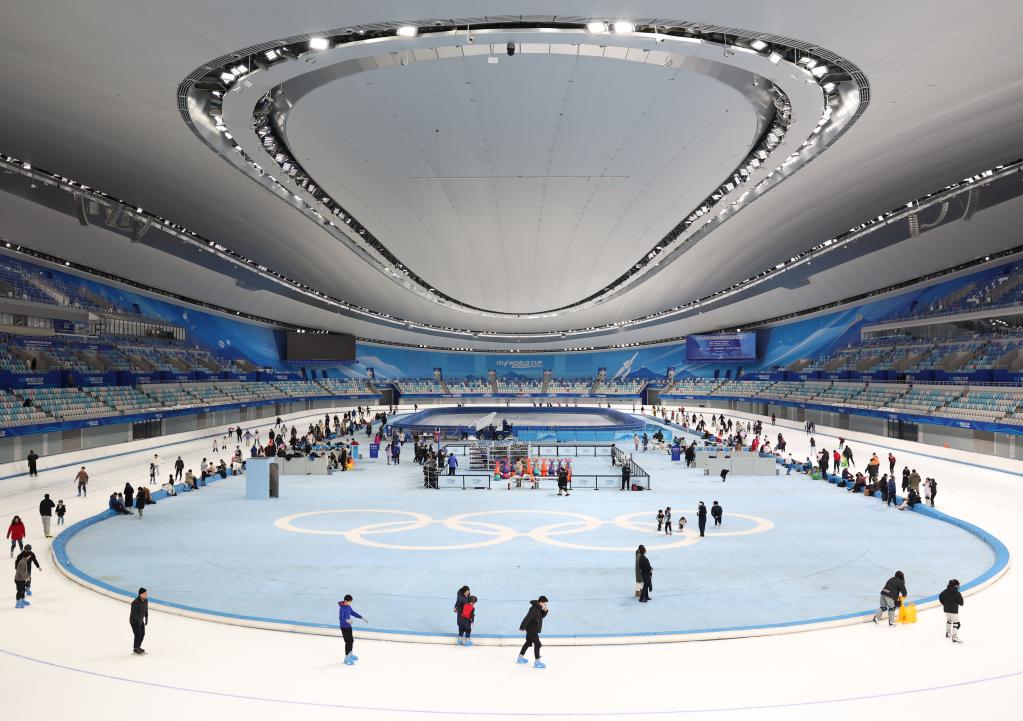 2025年1月4日,游客在国家速滑馆“冰丝带”体验滑冰。新华社记者 张晨霖 摄