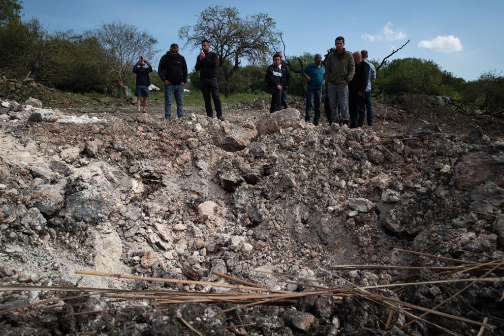 这是3月13日在以色列北部城镇扎尔齐尔拍摄的一处遭伊朗导弹袭击的地点。