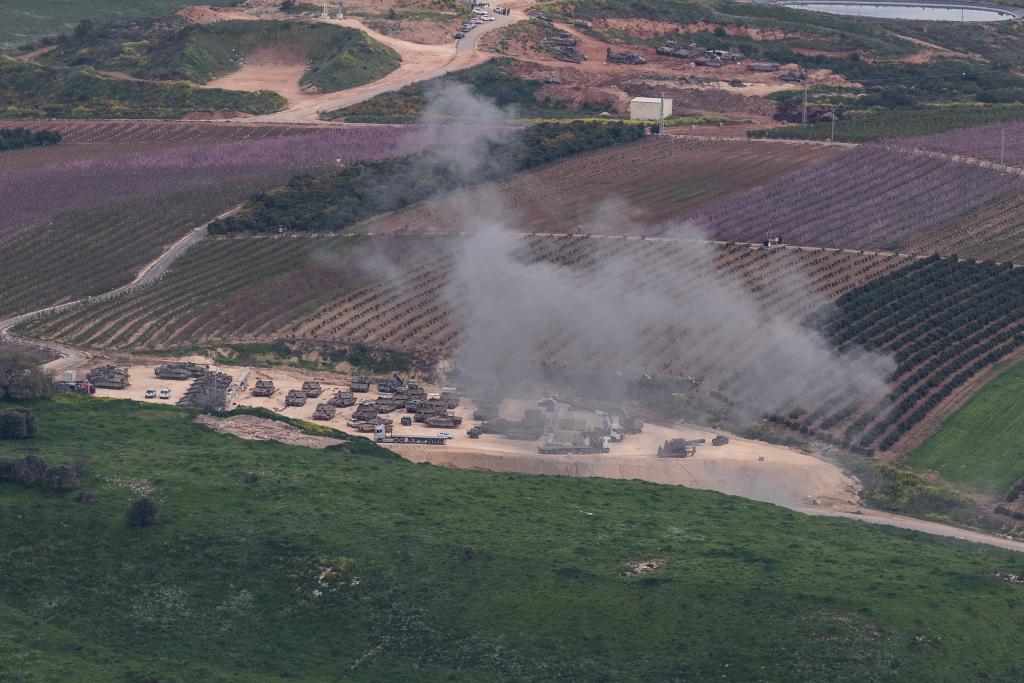 3月13日,以色列北部与黎巴嫩接壤的边境地区,以军一处集结点遭炮弹袭击。