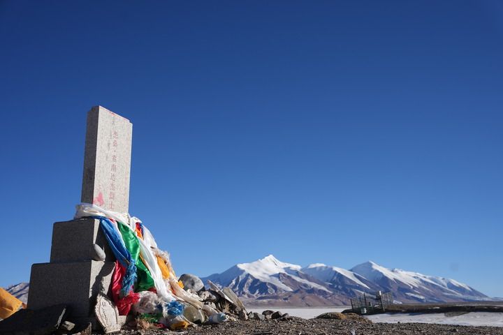 这是竖立在可可西里无人区腹地太阳湖边的索南达杰烈士纪念碑。新华社发(杜笑微摄)