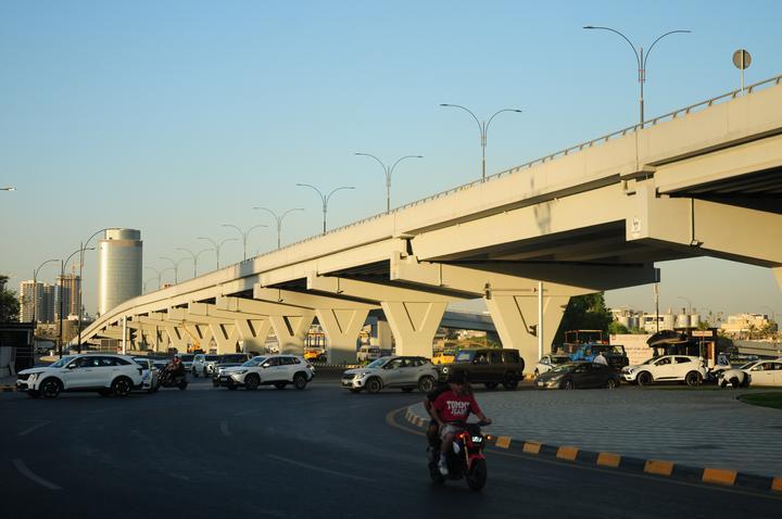 在伊拉克首都巴格达,中企承建的尼苏尔立体交通枢纽项目为缓解交通拥堵提供“中国方案”。