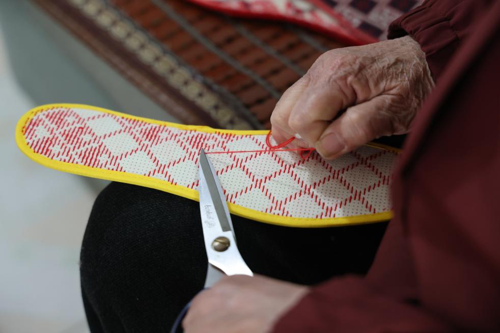 重庆大足,张兴会的家中。72岁的她,戴着老花镜,一针一线,在鞋垫上绣着图案。每天绣四五个小时,五六天才能绣完一双。