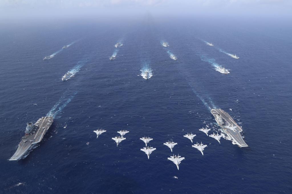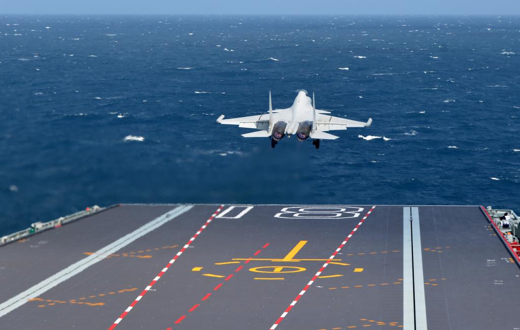 2024年10月下旬,海军辽宁舰编队开展远海实战化训练。期间,辽宁舰、山东舰编队首次开展双航母编队演练。新华社发(陈梦曦 摄)